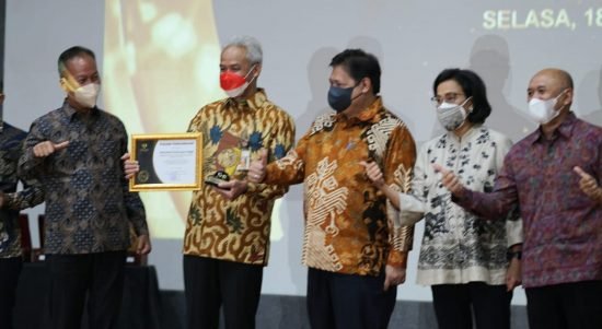 JAKARTA – Gubernur Jawa Tengah Ganjar Pranowo menerima penghargaan Kredit Usaha Rakyat (KUR) 2021 dari Kementerian Koordinasi Bidang Perekonomian. Ganjar berhasil membawa Jateng