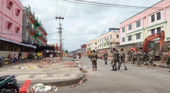PEKANBARU – Puluhan personel Satpol PP Kota Pekanbaru Disiagakan di lokasi pasca relokasi dan pembongkaran lapak pedagang Pasar Agus Salim, Jumat (19/11/2021).